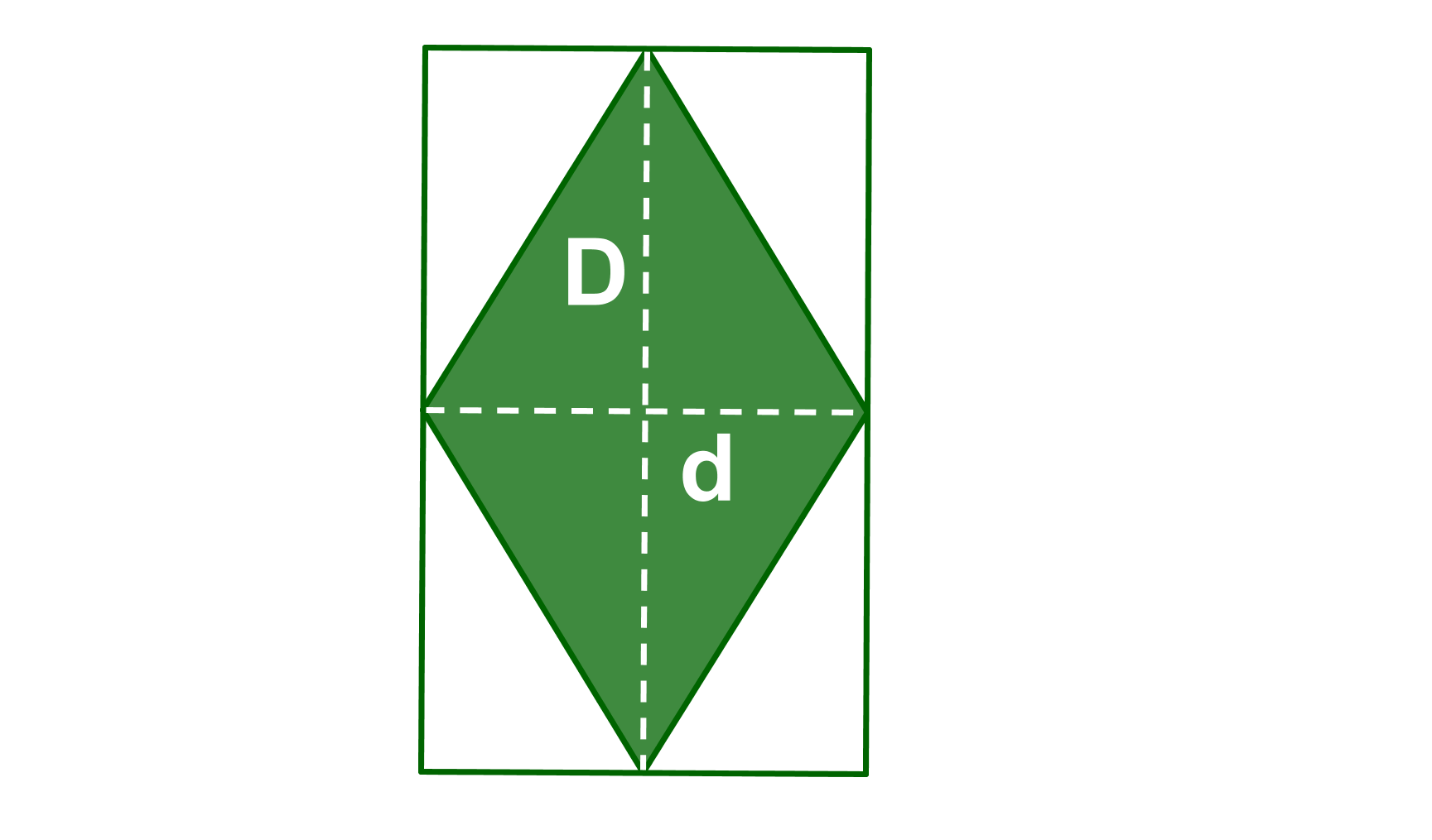 Mueve el deslizador del siguiente applet para poder ver otra demostración de la fórmula del área del rombo en función de sus diagonales.