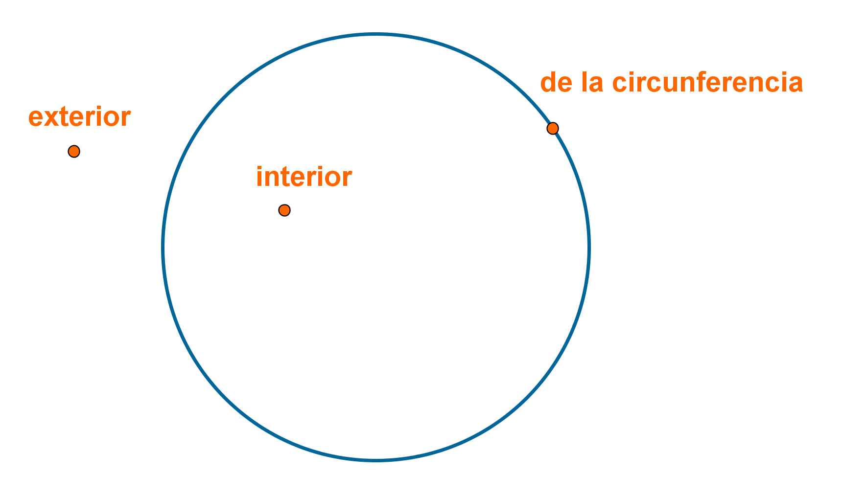 Interior: Si la distancia del punto al centro de la circunferencia es menor que el radio.