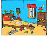 3- Il y a une cuisine, un salon, une salle de bain, un débarras et une chambre.