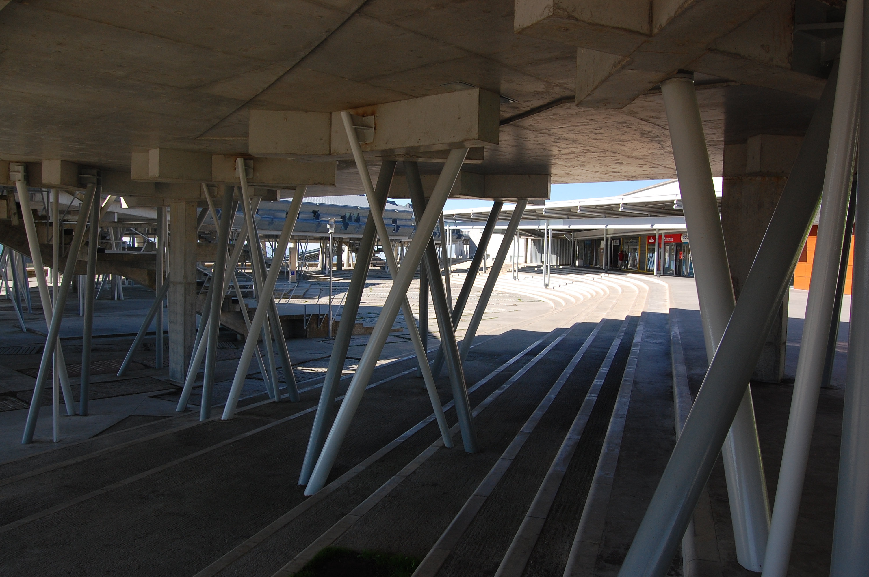 Soportes metálicos sujetando pasarela peatonal 2. (Campus Vigo).