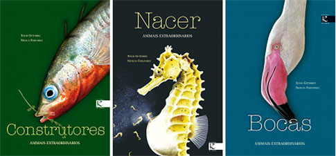 Cabe destacar a triloxía publicada por KALANDRAKA: Constructores, Nacer e Bocas. Cun preciosismo estético cercano á fotografía, introduce ao lector no mundo das construccións animais, das diferentes formas de nacer e parir, e das múltiples maneiras que os animais teñen de alimentarse. Autor: Xulio Gutiérrez Ilustrador: Nicolás Fernández KALANDRAKA |