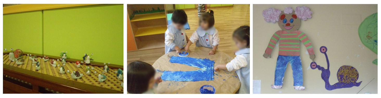 Los maestros provocaron una serie de investigaciones alrededor de los caracoles como animales reales: los recogieron, los alimentaron, estudiaron su geometría. Los utilizaron para trabajar los afectos, el cuidado de los animales, la responsabilidad de su alimentación, y el trabajo cooperativo para llevarlo a cabo.
