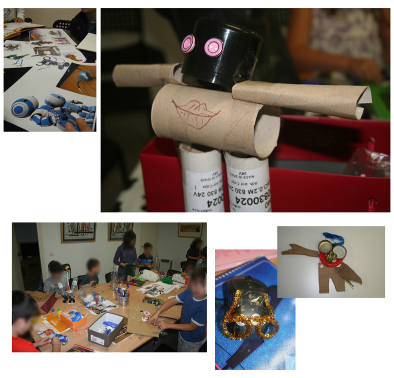 Se inicia un proyecto similar con estudiantes de diferentes edades, en diferentes localizaciones: la creación de personajes robóticos, desde todas sus perspectivas. Se establecen las siguientes FASES: 1. Búsqueda de materiales en sus propios hogares. 2. Aportación de los mismos a un fondo común, compartido. 3. Diseño en papel del personaje, acompañado de ssu descripción textual: rasgos psicológicos, planeta de procedencia, finalidad, etc. |