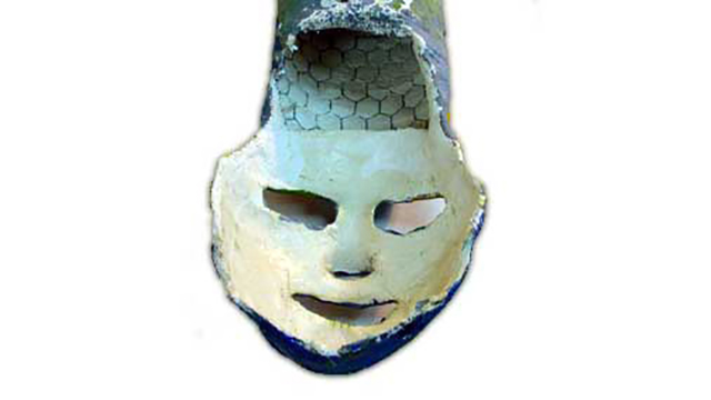- Partimos de bosquexos en papel para continuar a actividade cortando malla metálica e dándolle a forma axeitada coa axuda do alicate. Recheamos e unimos á careta as formas resultantes coas vendas de escaiola.