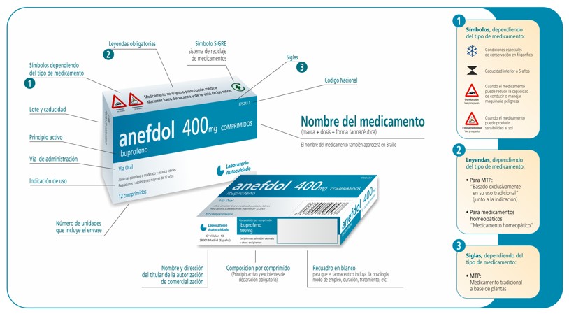 Vamos a diseñar el envase para nuestro remedio contra la violencia de género. Observad toda la información que contiene una caja de medicamento.