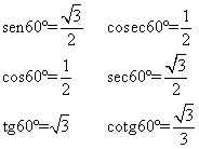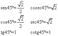 Deduciremos ahora el valor exacto de las razones trigonométricas de los ángulos de 30°, 45° y 60º.