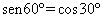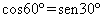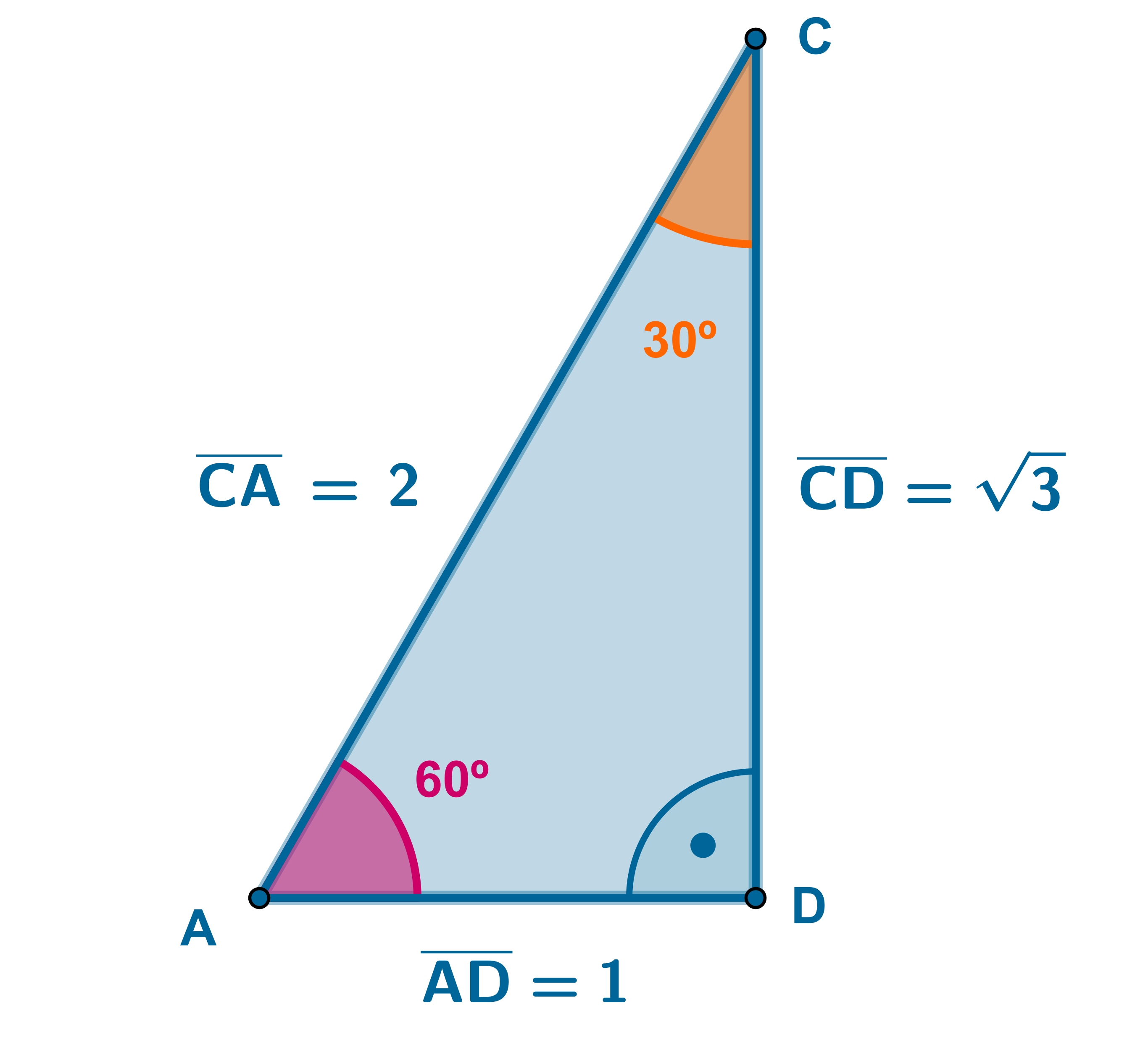 Podemos observar que el cateto opuesto a 60º, CD, es el cateto contiguo a 30º. El cateto contiguo a 60º, AD, es el cateto opuesto a 30º.