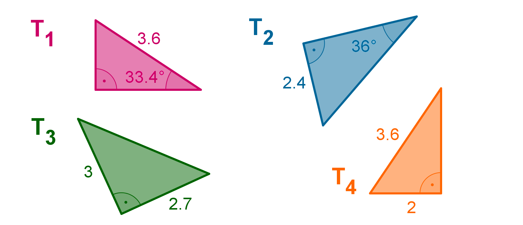 Resuelve los siguientes triángulos y escribe los resultados redondeados a las décimas.