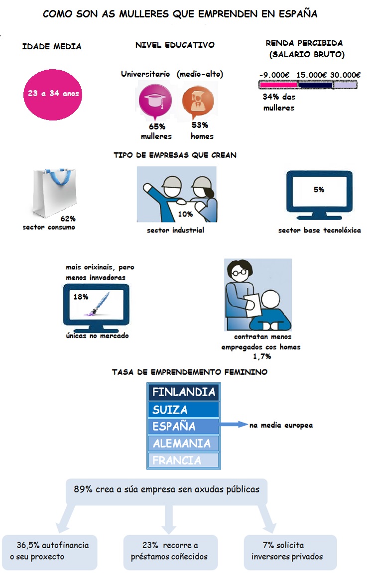 Pero, como é o perfil da muller emprendedora? Como son as empresas que crean ? Existen diferencias coas que crean os homes?. Verémolo a continuación!