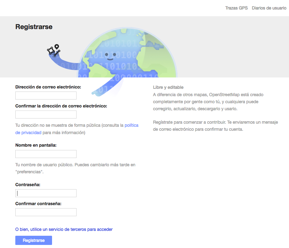 Se escolles darte de alta sen vinculala a ningún servizo que xa teñas terás que cubrir o seguinte formulario e esperar que te envíen ao teu mail un correo de confirmación para activar a conta.