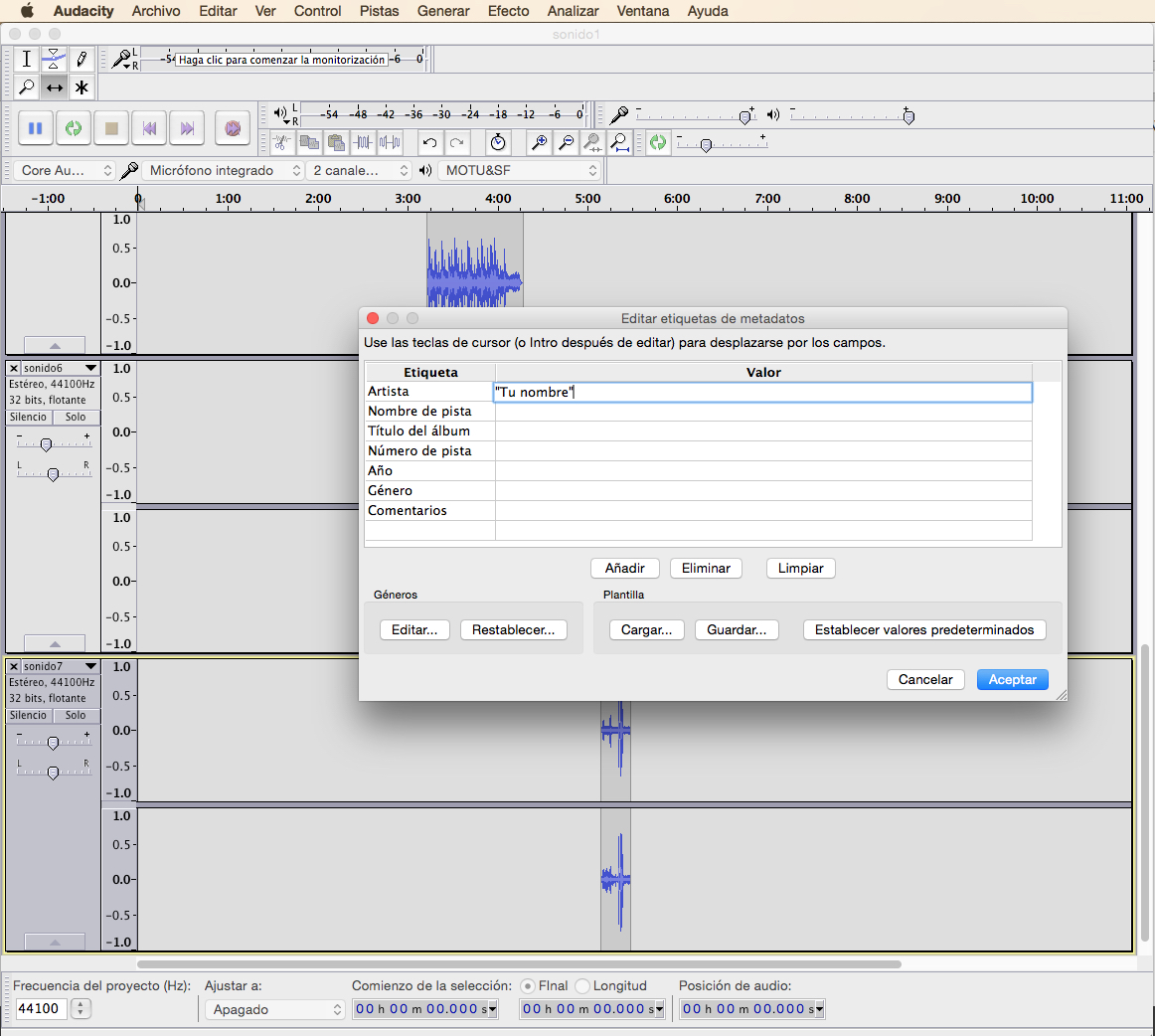 Para realizar a montaxe utilizarás o editor de audio multipistas Audacity seguindo as técnicas explicadas na unidade de edición.