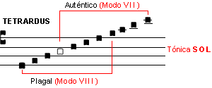 A escala mixolidia correspóndese aos 7º e 8º modos gregorianos denominados Tetrardus.