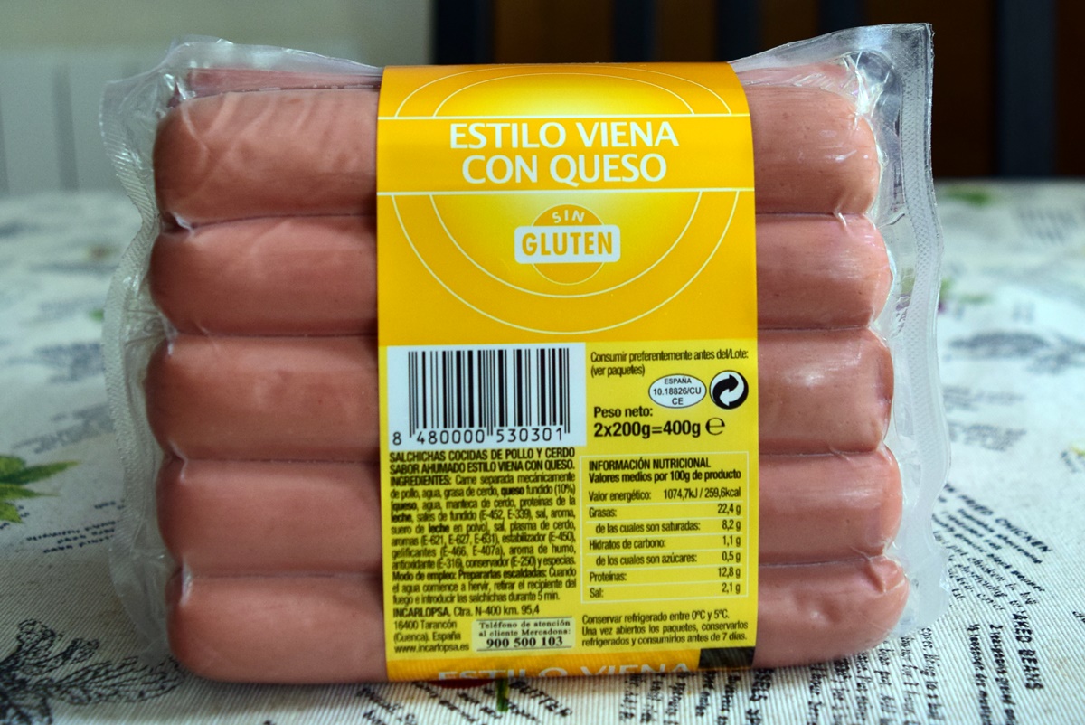 Salchichas con queixo, Hacendado