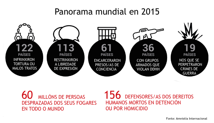 Cada grupo quédase con un dos dereitos universais escollidos na actividade anterior e procura situacións de denuncia ou reclamación do seu cumprimento. Pode atoparse contido de interese en novas, artigos, informes ou monográficos.
