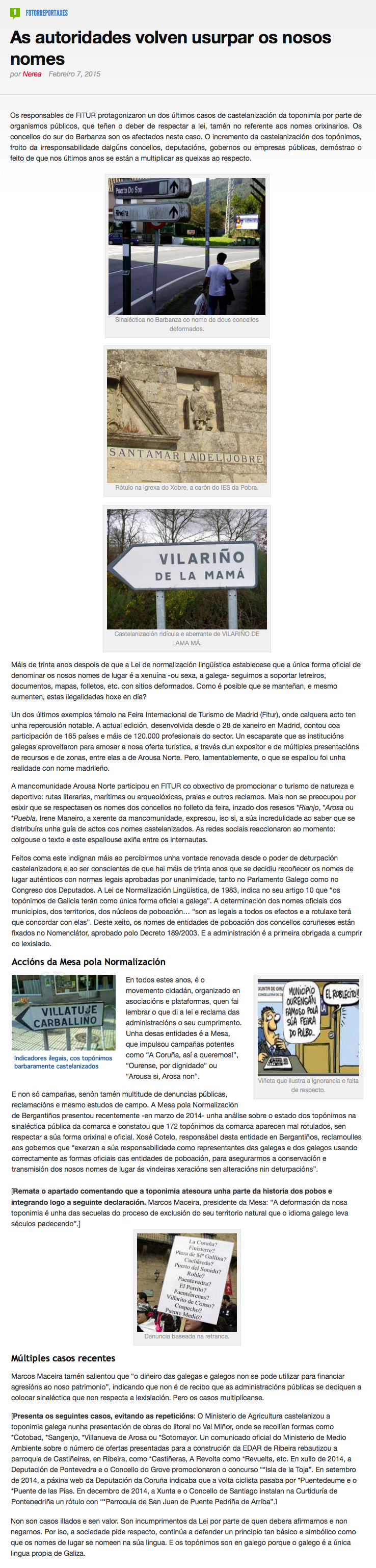 Lede con atención esta reportaxe con marcas e despois contestade as seguintes cuestións.