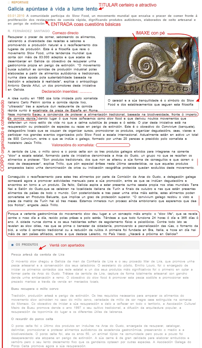 - Deixaremos claros os bloques (partes) da reportaxe, desenvolvendo en cada un deles un aspecto do tema e combinando datos e declaracións.