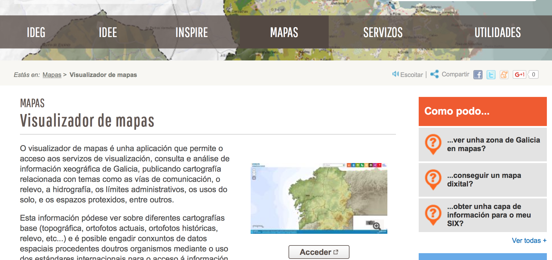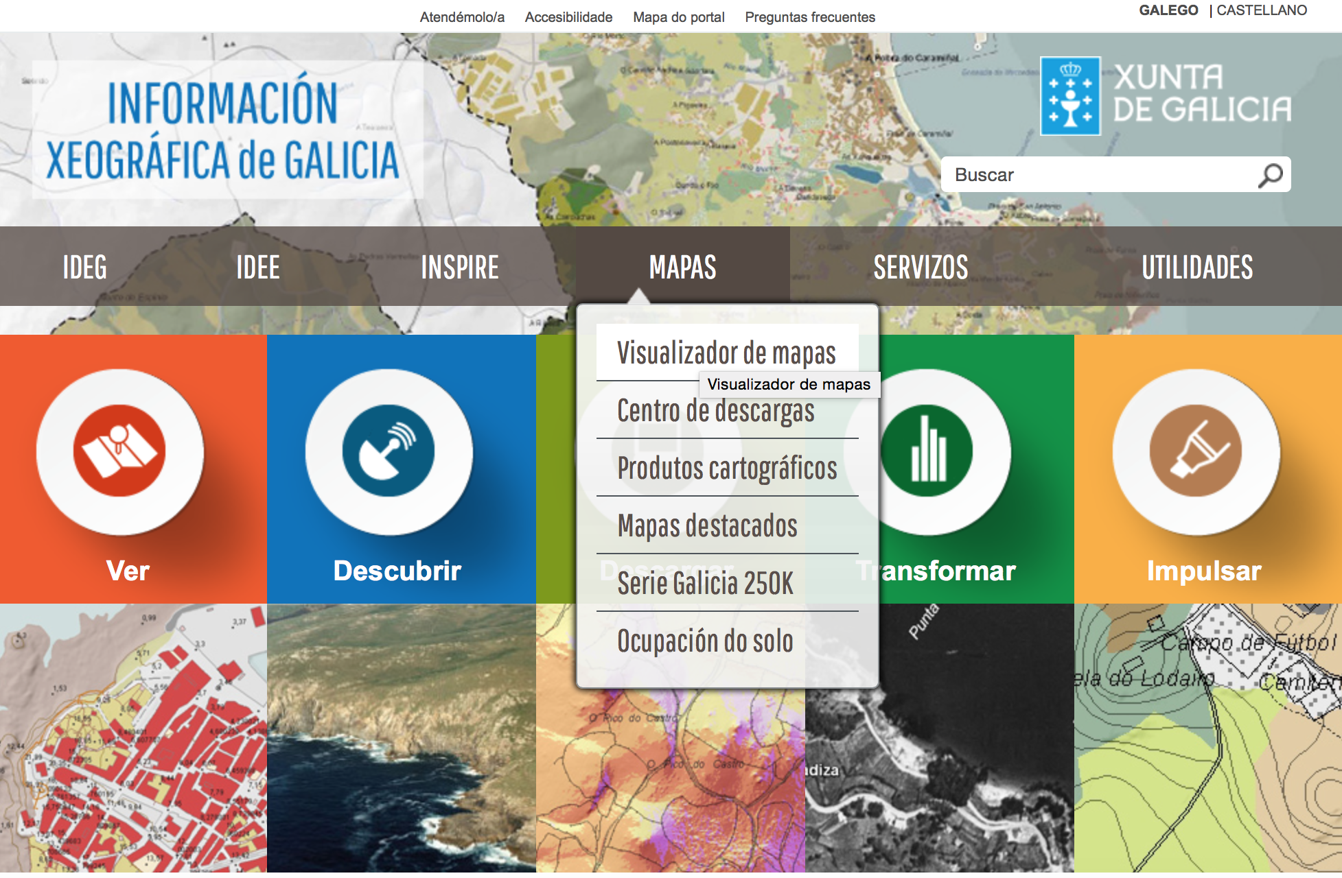 Unha vez nela, no menú principal haberá que despregar a opción: “MAPAS-VISUALIZADOR DE MAPAS”