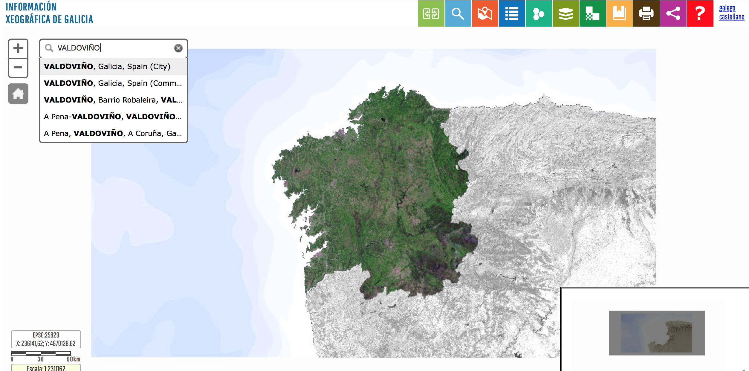 Este é un visor moi semellante ao noso. Unha vez dentro da páxina do visor, na lapela de búsqueda situado na parte superior esquerda, escribiremos: VALDOVIÑO