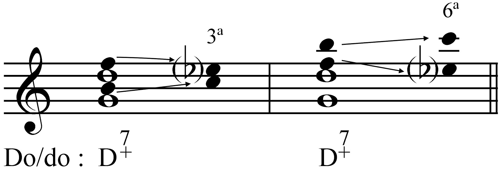 Agora escoita o que sería a mesma peza sen dominantes secundarias e compara o resultado ca peza orixinal. Fíxate como ao quitarlle a alteración, ademais de desfacer o tritón tamén cambia a súa función, volvéndose mais consoante, mais estable e con menos cor musical.