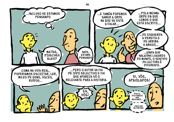 Se queredes coñecer mellor o proceso de creación dunha banda deseñada, podedes ler A tres bandas, a proposta de Mariano Casas e Teresa María Comojo para crear unha BD da que proceden as viñetas das actividades.