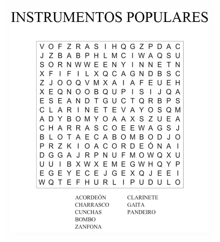 Repasa o instrumentos que podemos que adoitan estar nas nosas agrupacións populares.
