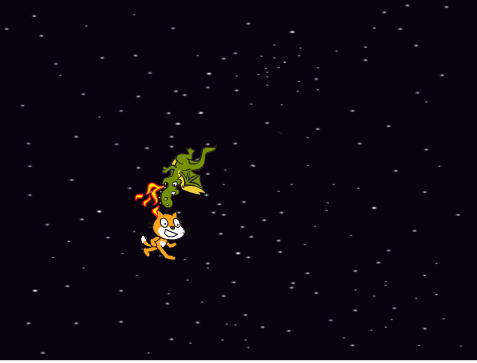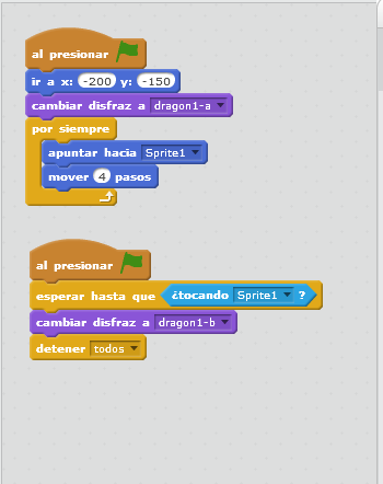 Crea un xogo no que un personaxe persiga a outro e cando o atrapa fai algo (ocurre algún efecto).