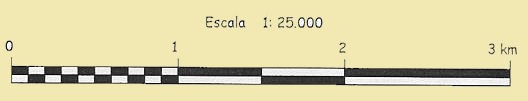 1:25.000 = 1 cm no mapa / 25.000 cm no terreo = 1 cm no mapa / 250 m no terreo
