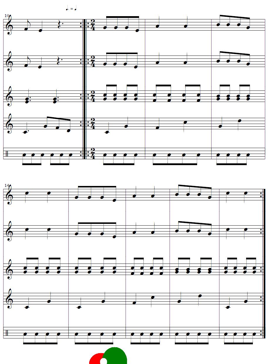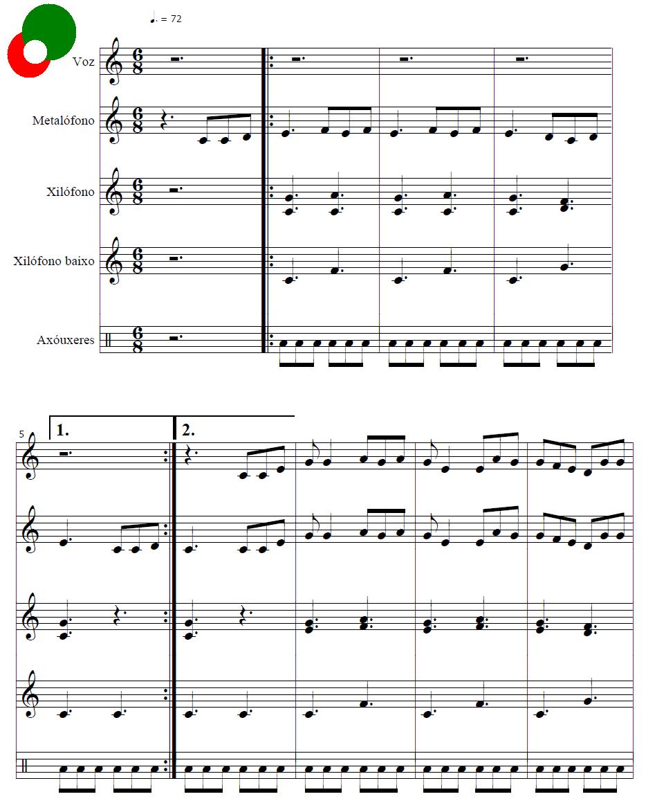 Aquí vai a partitura do arranxo para estes instrumentos: