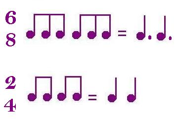 O 6/8 é binario, igual que o 2/4, pero en lugar de 2 corcheas en cada pulso, entran 3.