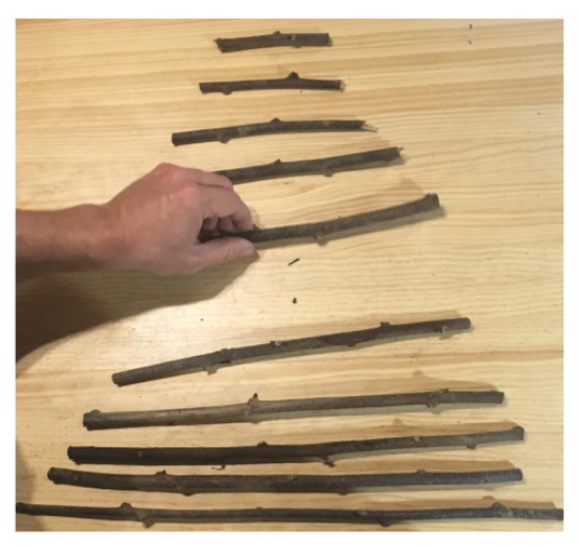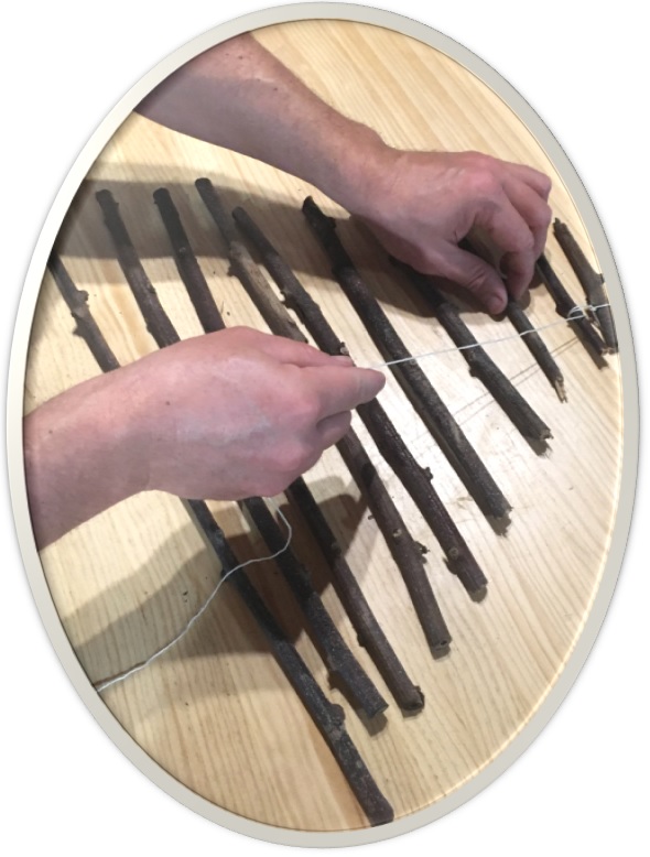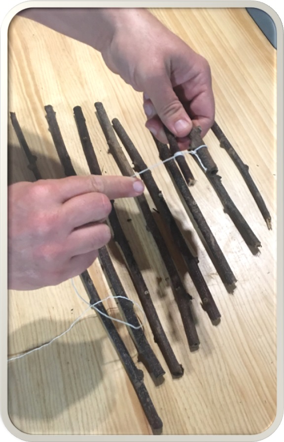 - 1st step: take the stick and the string. Tie the string to one end of the stick with several knots to make sure it does not move.