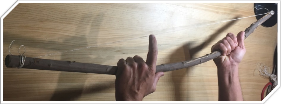 We already have our musical bow. Now we have to check its sound. In order to make it resound with a higher volume it is good to place it over a surface, preferably wood, because it is where the sound propagates better.
