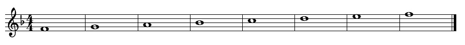 Notice that the accidental of B flat appears in the key signature, so every time a B appears we have to make it flat. Don’t forget it!