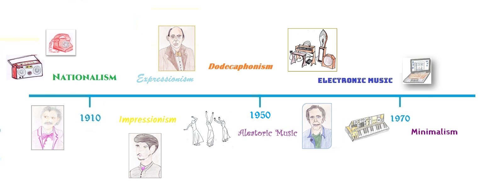 In the 20th century there are several musical trends. It’s a period of changes, the moment of two great wars, political and economical instability, the end of the government of big dynasties, advances in technology and medicine, discovery of electricity, telephone, radio, television and at the end, the Internet; antibiotics, space flights and planes. What a century!