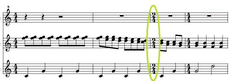 The measures we use in this song are 4/4 or 2/4 as you can see in the score.