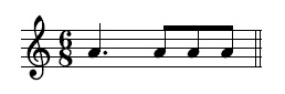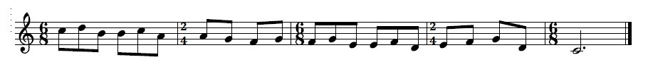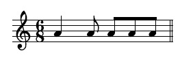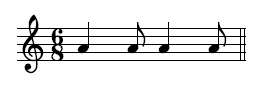 The 6/8 time as well as the 2/4 have 2 pulses, don’t they? The difference is that in a pulse of the 6/8 there’s space for 3 eighth notes and in the 2/4 there’s space for 2. As there are fewer notes in the 2/4, when we get to it, it’ll seem that we are slowing down, but it’s not like that. The pulse is always the same.