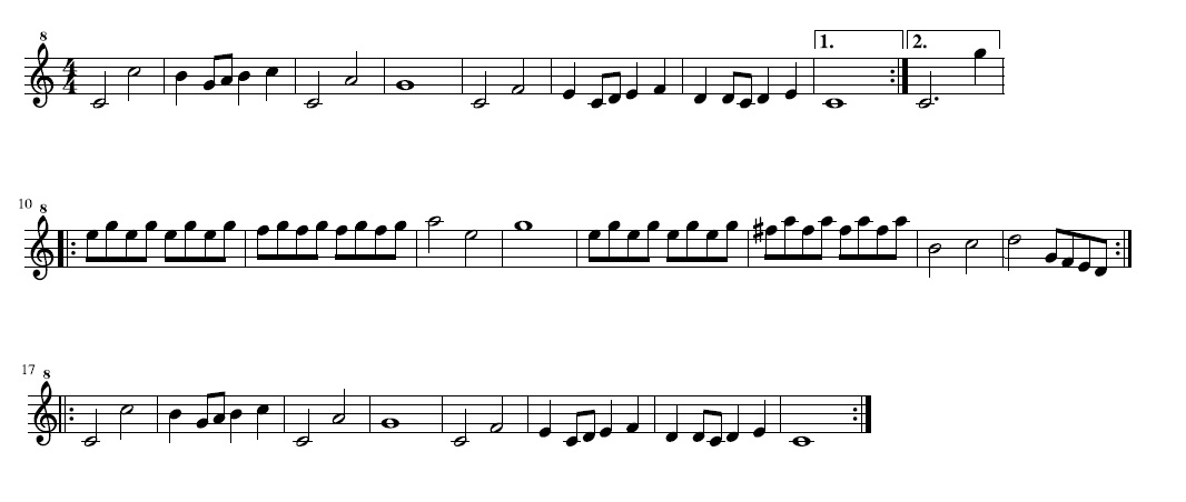 We are going to have a look at the score Over the rainbow. Taking into account the repetitions, it would be: