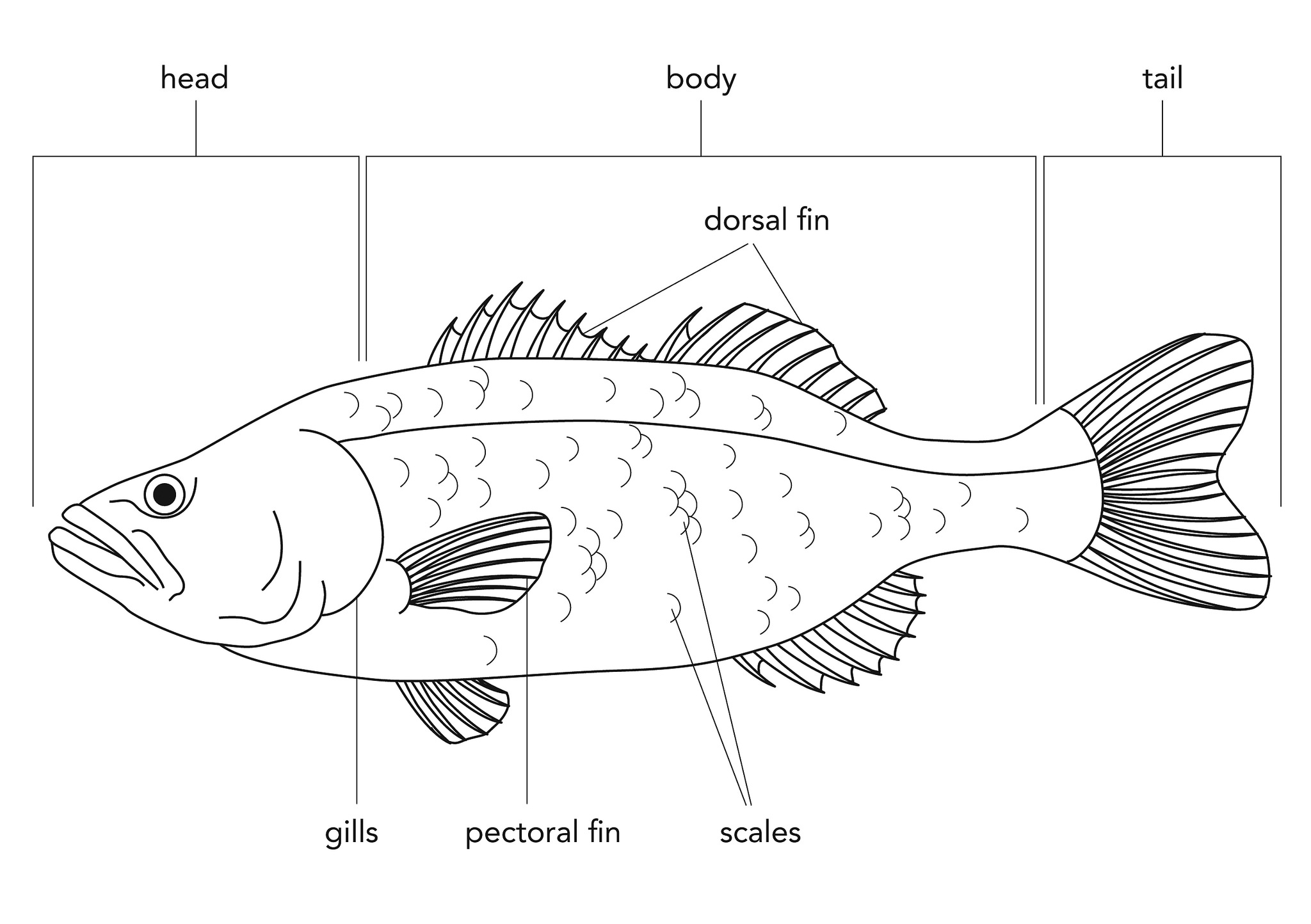 3. Have a look at this image with the parts of a fish. Learn them. Then make a list with the most common fish in your area. Search photographs on the Internet and see if you can identify their different parts. |