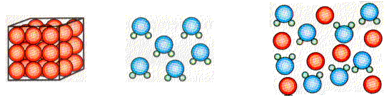 Como vimos no último exercicio, as disolucións poden estar en calquera dos tres estados da materia, sólido, líquido e gas. Pero tamén poden ser unha mestura deles: