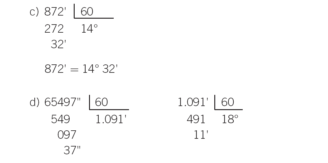 b) 1° 25' −10' g) 42° 5' 3" −38' 10" g) 42° 5' 3" −38' 10"