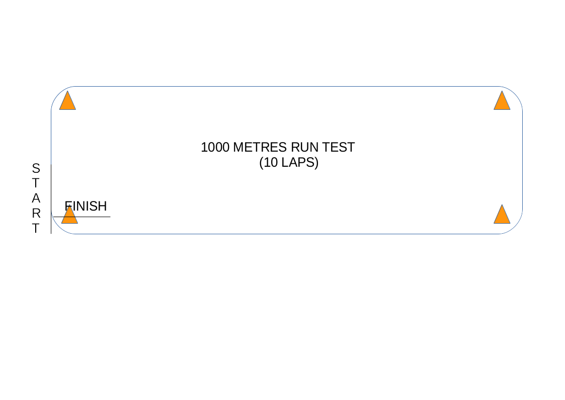 Procedure: The aim of this test is to complete the required distance in the fastest possible time. On the signal, "ready," all participants line up behind the starting line. On the command ‘Go!’ the clock will start, and they will begin running at their own pace. Walking is allowed but not encouraged.