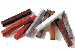 Barra composta. Sanguina (alaranxada), sepia (pardo), negra, branca e gris son as máis usadas. É unha mestura de pigmento natural e aglutinante que permite diversos tipos de trazos. Úsanse para debuxos monocromáticos, obtemos distintas tonalidades se a aplicamos con máis ou menos presión ou difuminamos. |