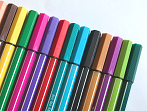 Rotuladores. Inventado polo xaponés Yukio Hoire, a mediados do século 20, nace para satisfacelas necesidades dos artistas gráficos. É un instrumento de punta de feltro que contén tintas de cores, e que produce trazos moi definidos. Non se pode borrar e é difícil de mesturar. O branco obtémolo do papel. |
