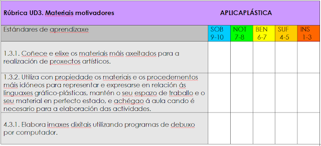 Utilizar con propiedade os materiais e os procedementos máis idóneos para representar e expresarse en relación ás linguaxes gráfico-plásticas, manter o seu espazo de traballo e o seu material en perfecto estado, e achegalo á aula cando é necesario para a elaboración das actividades.