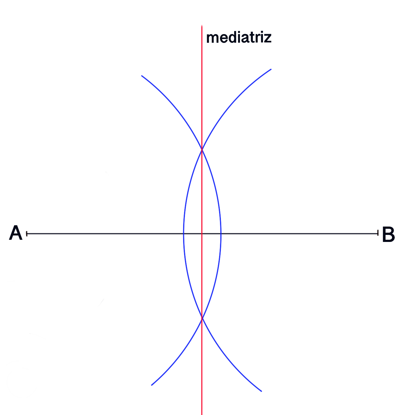 Mediatriz: Recta perpendicular a un segmento que se traza no seu punto medio.
