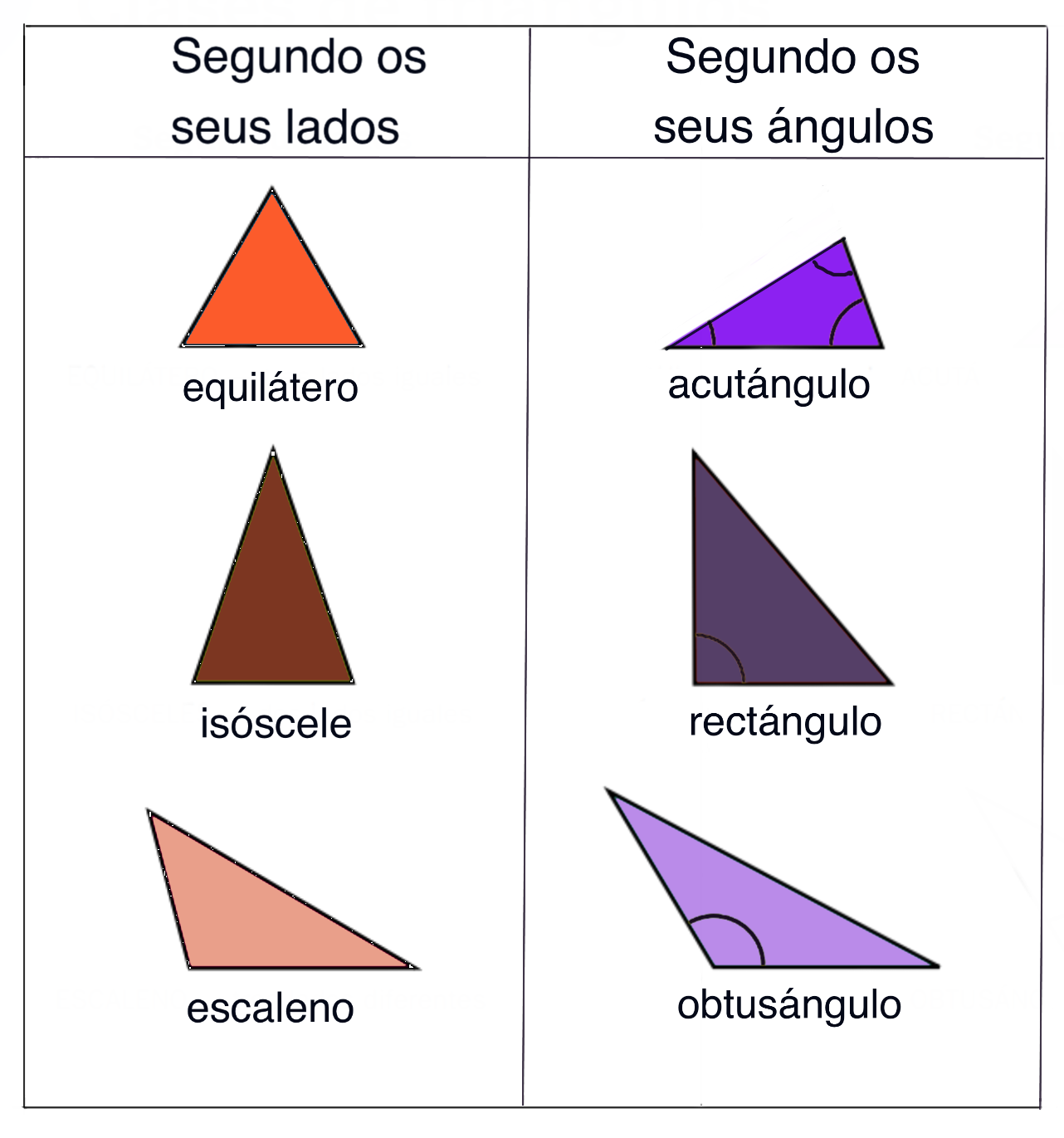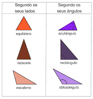 Triángulos: Figura xeométrica cerrada de tres lados e tres ángulos. Existe unha clasificación segundo a medida dos seus lados e dos seus ángulos: