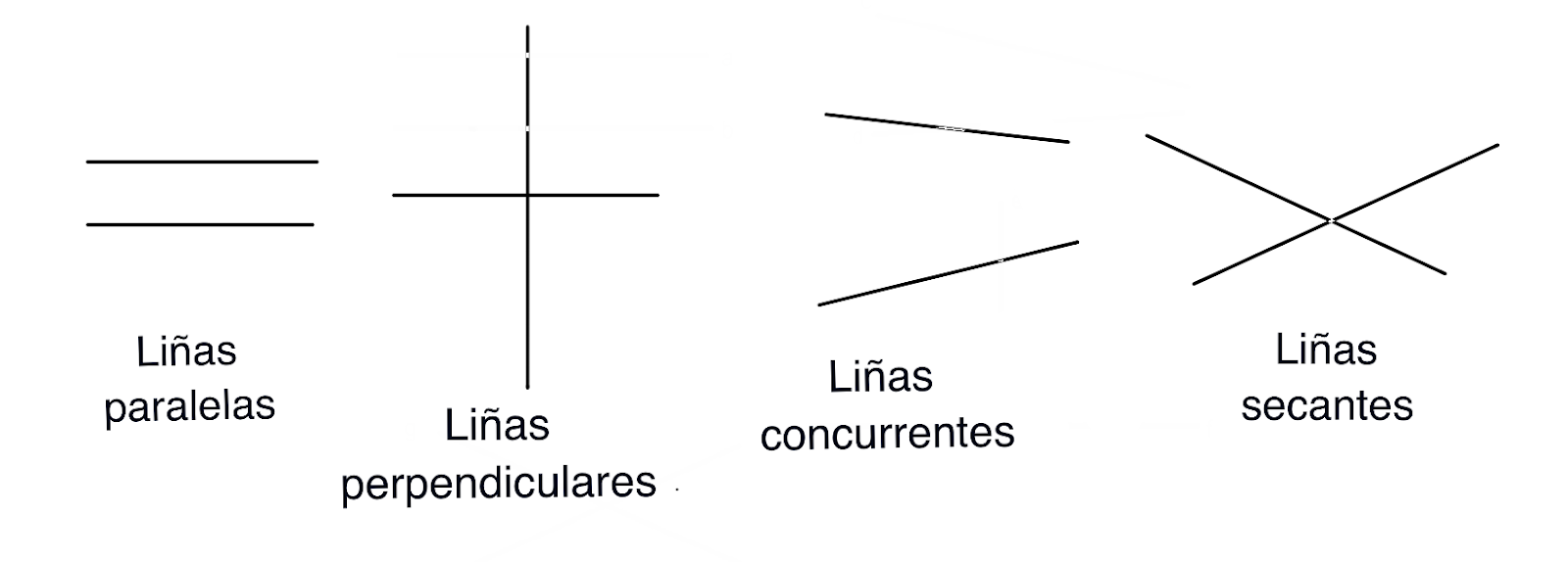 -CONCORRENTES: cando dúas liñas chegan a xuntarse nun punto concreto.