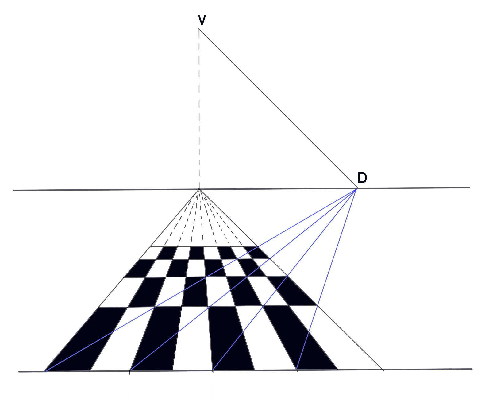 2.1.4 Debuxo en perspectiva cónica frontal dun taboleiro de xadrez.