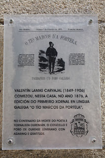 Placa conmemorativa "O Tio Marcos d'a Portela", o primeiro xornal en lingua galega. Ourense. P.Lameiro, CC BY-SA 4.0