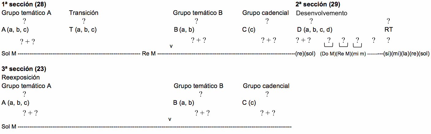 Completa cos números o seguinte esquema formal desta sonata de Joseph Haydn: