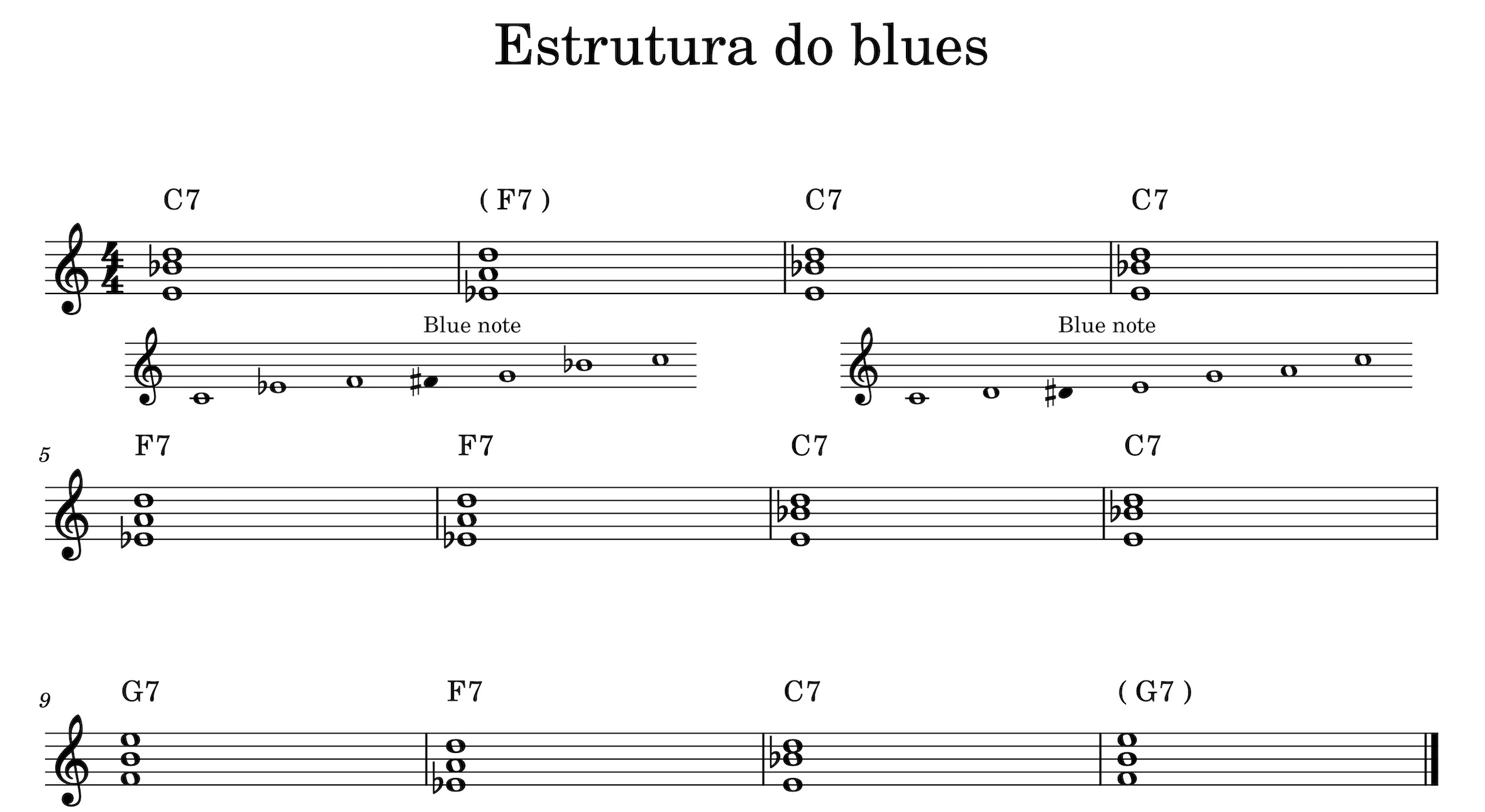 Este é o esquema harmónica e dúas das escalas máis utilizadas no blues.
